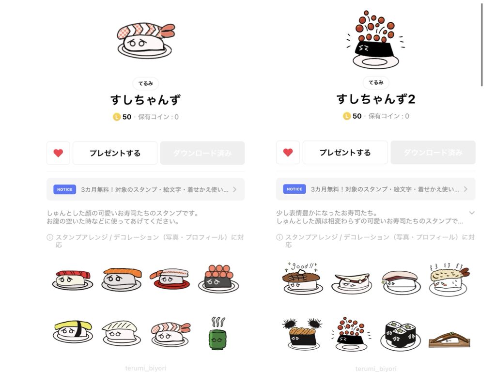 LINEスタンプ「すしちゃんずシリーズ」を制作。
